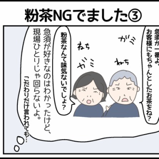 ※作者の体験と感想を元にした創作です。あくまで一個人の視点です。※粉茶そのものを否定する意図はありません。 「お茶出しを全部ひとりに押し付けられる職場環境」描いた話です。前回のお話▽