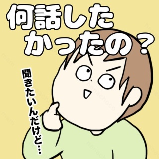 小学生の息子が何やら妹に話しかけてるようですが・・・うんうん!あるある!話の途中で何言いたかったかわからなくなることありますよね。2人の間でハテナが飛び交っていてなんとも可愛かったです。ハルさんはよく人の会話中に割り入ってくるんですが理由を聞くと、待ってる間に何話すんだったか忘れちゃうからだそうで…笑でも少しは間を読めるようになってほしいと思う母ですが・・・まだ早いか?成長は少しずつ気長に待つとしましょう。明日は「昼寝したあとは①」の話を投稿するよ♪次のお話はこちら↓ 兄妹のお話は他にも♪ ↓↓