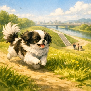 普段は通らない土手の上を ぷぅとお散歩 土手の下にお友達を見つけたぷぅ だけど 土手の斜面を通るのは禁止されている ぷぅは辺りをキョロキョロ見回して 土手を降りる方法を探す 残念ながら近くに階段がない それでもぷぅは 見えないけれど きっとこっちから降りられるはず と走り出す 100m先にスロープがある方目掛けて走るぷぅ お友達に会うために 一生懸命走るぷぅ