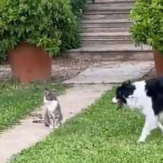 猫は全く動じない。動け、動けよぉ! → 犬はずっとこうします…