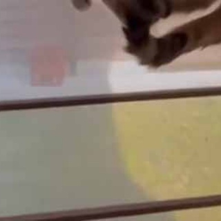 カーテンの向こうにいる猫さん。 やばい、 少しでも動いたら落ちるにゃ! そんな2匹はこんな感じ…