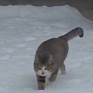 雪の上を歩くのは結構大変だ。スタスタスタ♪ → 猫は優雅にこうします…