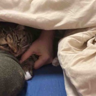 添い寝猫として麿白の跡を継いだ琥麦です。添い寝の位置がかつてお腹の方だったのですが最近はこうして後ろから寝ながら抱っこされるかんじになってます。この姿勢だと琥麦の背中が私の心臓の位置にくっつく感じになります。その胸の位置にいると不思議な暖かさがありますね。椅子の上での抱っこもこうして胸に頭を押し付けるのが大好きな琥麦。おそらく、心臓の音で安心するみたいなところがありそうです。その辺りが麿白との違いでしょうか。麿白はどちらかというと密着でくっつくというよりはお互いの手を握る、私の手が麿白のお腹を触るという感じで、ポイントは「手」でした。猫により何を求めるかが違うんですね。あんちゃんもいるような気がするんだゃぃ。2歳前の若い猫と思えないくらい、添い寝ではじっとしている琥麦。まだたぶん、麿白の匂いはこの布団と私の服に残ってると思います。 ランキングに参加しています。1日1クリック、なにとぞ おねがいしますm(_ _)m