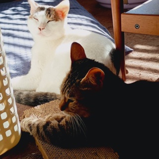 現在、麿白先生と参瑚で腎不全の療養をしてます。歴代でもこれまで黒皇、チャー坊、つよしと腎不全の猫たちを見送ってきました(涼珠は腎不全より腫瘍)が、それぞれに微妙に症状の出方が違います。共に週に2回程度の輸液。もし嘔吐があったら内容次第でその日にも行いますが今のところそれはありません。麿白先生12歳、麿白先生は腎臓が片方最初から機能しておらず心臓にも不安あり。参瑚13歳。参瑚は甲状腺機能亢進症も抱えててそちらの療養も兼ねてます。麿白先生も参瑚もいずれも通院、投薬、輸液は全て完璧にこなします。ただし、参瑚は偏食で療法食を食べる時と食べない時あり。食べない時は一般の嗜好性の高い総合栄養食になり、それが今後の大きな不安要素です。麿白先生は少食かつ1日に何度も食べるスタイルですが、ほぼ療法食のみで完成してます。いずれも貧血はあり、麿白先生はリンとカリウムがやや高く、参瑚はカリウムが低く甲状腺の数値が高め(療法食で対応中)。嘔吐は参瑚の方がやや多く、嘔吐したらいずれもすぐに吐き気どめを飲ませてます。症状として行き着く所は一緒になるんですけど、それぞれ微妙に対応が変わります。今までの輸液はリンゲル液がほとんどでしたが、麿白先生と参瑚は生理食塩水です。あとは何といってもそれぞれの猫の性格と望むものになります。参瑚は体重が3.7kgまで減りましたが、体が腎不全仕様になり筋肉が減ったというのもさることながら、偏食気質が爆発して療法食を前に半ばハンスト状態になったからでした。諦めて療法食と参瑚が食べる総合栄養食を並べておくというやり方になってます。そのため、フードロスがえぐいです。麿白先生が8年目でも維持してるのは、そういう食への執着がなく、基本的に私がやることなら全て受け入れるので腎不全の療養生活にさほどストレスがなかったからというのが挙げられます。あとは筋肉量が最初から少ないのも療養生活上でいい方向に働いてるように思います。麿白先生は今までのことに輸液を追加して検査の頻度を上げる中で対応していくとして、参瑚の偏食が今後の一番の懸念点になっていくと思ってます。少なくとも個室療養が参瑚には最善であろうという方向性なので、まず今年をこのまま揺らぎのある中でも乗り切れるかどうかという所ですね。 ランキングに参加しています。1日1クリック、なにとぞ おねがいしますm(_ _)m