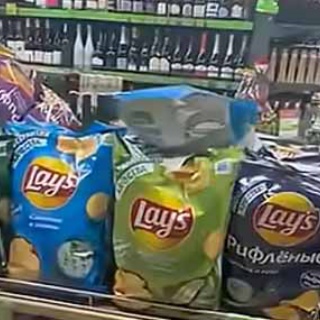 店のスナック売り場に何か違和感が。陳列棚を覗いてみたらネコがいるんだがw…