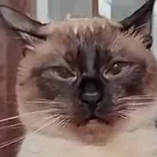2匹のネコが並んで毛づくろいしていた。何かに気づいて顔をあげる → 1匹はこんな口です…