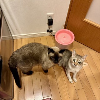 麿白先生の飲み水はぬるま湯です。ふむ、これがチキューのァッィォュだね。実においしいね。ぬるいお湯です。トレビーノを通した水に、それを少し沸かしたものを足してぬるま湯にしています。定位置に置いてある冷たい水はやはり飲んでも少量。ぬるま湯を飲みたい時にアピールしに来るので電気ケトルで水トレイを洗って入れ替えて少し温めて出すとゴクゴク飲みます。麿白先生が水を飲むのは腎不全とその薬であるテルミサルタンの影響です。実に多飲多尿です。ぬるま湯をぐいぐい飲んで満足するとまた目配せをしてトイレに行き、私が麿白先生のNyouを専用紙皿で受け止めてそのまま廃棄。麿白先生は臭いを残さず砂かきをせずに済むのでこの方式がお気に入りのようで、Nyouの時は受け止めやすいように腰をあげてします。ぬるま湯に限らず、フードも少し温めた方が食いつきがよくなりますね。一方、野良猫及び野良出身の猫はなぜか汚れた水を好む傾向があり、困った事になることもありますね。綺麗な水トレイがあるのに流しの桶の水を飲みたがったり、シンクの水滴を舐めようとしたり。野良猫だと雨や雪のあとの水たまりのものをよく飲んでるのを見かけました。そりゃ膀胱炎になりますね。参瑚が保護後に割とすぐに膀胱炎になったのも、詳細な検査をしたところやはりそういうことに影響があったようです。そしてその時に飲ませた抗生物質が絶望的に相性が悪く、どうしたものかという結果としてとにかく水を多く飲ませるという所に落ち着きました。具体的には好きなおやつを水ヒタヒタにする、そのうちメインのフードもそのようにする等。フリーズドライささみをふりかけたりしましたね。その移行は幸いうまく行きました。ふやけたフードがどうしても残り、ある程度のフード廃棄が常に出てしまうのが難点でした。ただ、現在は腎不全とテルミサルタンの影響でやはり多飲多尿になり、そのおかげで尿路系は問題ないようです。その分参瑚のトイレは毎日猫砂消費がえぐいことになってます。システムトイレでは一切しないのでこれはまたしょうがない。猫の自分の意思なので「水の飲ませ過ぎ」というのはまずないですが、あまりにも勢いよく過剰に飲む時はその後にマーライオンのような嘔吐に注意が必要です。猫草があればそれにいくのでしょうけど、「吐きたくて水を飲む」「吐きたくて食べる」というのも往々にしてあるようです。 ランキングに参加しています。1日1クリック、なにとぞ おねがいしますm(_ _)m
