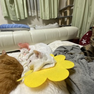 暁璘がいちばん調子を維持してたのが2020年から2021年。保護直後から右顎関節やアレルギーで不調の時もありましたがこの頃は抗ヒスタミン剤で落ち着かせてた記憶があります。2021年7月から8月、預かり子猫ラッシュの一方で平和だった居間。これでも暁璘は居間に常駐してたわけではなく私がいる時限定でした。麿白参瑚暁璘がいて、時雉は少し距離を取ってます。そう、時雉がどうも暁璘を苦手にしてる節を感じてたのと、私がいない時に参瑚をキレさせるようなことをするんじゃないかという危惧からでした。時坊!オラと遊ぶべ!白たぬきはどうも面倒臭いやい。暁璘的には麿白と同じ温度差で時雉に絡みに行くのですが、時雉は麿白先生のようにさばいたりはせず距離をとってましたね。なんだべ時坊、その屋台地上げするべか。ここはおいらの城やい、わたさないやい。とはいいつつも、暁璘が参瑚にしばかれて落ち込んでる時は時雉がフォローに入ったりしてました。暁璘的には時坊もオラのともだちだったに間違いありません。見返すと、暁璘が比較的参瑚には遠慮してたので、参瑚と暁璘がそばにいる画像も多いのでした。みんなオラの大事なともだちだったべ。 ランキングに参加しています。1日1クリック、なにとぞ おねがいしますm(_ _)m