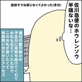 4− 90.佐川さんからお礼が来た佐川さんにお礼を伝えた話このあと、まさかの本人から直接お礼言ったことが伝わったと報告もらえて佐川急便のホウレンソウ凄いなと思ったら翌日まさかの偶然が発生してこの数日は色々縁を感じた。