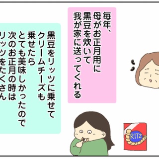 母は毎年年末に黒豆を炊いたの送ってくれるのだけど我が家では黒豆喜んで食べるの私くらいなのでちょっと食べ余しちゃうんだよね…もちろん黒豆を炊くの大変なの分かっているので残さず食べてますよ〜ぜんざいに入れたりしてねで、今年は黒豆とクリームチーズをリッツに乗せて食べてみたけどこれがすごく美味しくてリッツもクリームチーズも余ってたのを出したのであっという間になくなったので来年のお正月の時にはしっかり量を用意したいと思いました(もう次のお正月の話!?)まあ母も毎年黒豆作るの大変だと言ってるので今年もまた作ってくれるかは分からないですけどね… ↑この時は息子、黒豆食べてたのにもう全然食べなくなりました… リッツクラッカー L(247g)【リッツ】価格:390円(税込、送料別) (2026/1/5時点) LINEでのブログ更新通知が終了しましたので良かったらアプリでのフォローお願いしますアプリでのフォローはこちらから↓Twitter(x)はぼちぼち出現する予定です↓ランキング参加してます応援お願い致します↓育児絵日記ランキング