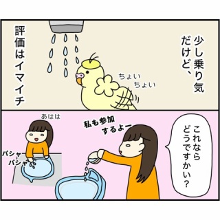 インコの水浴びは、私も参加する