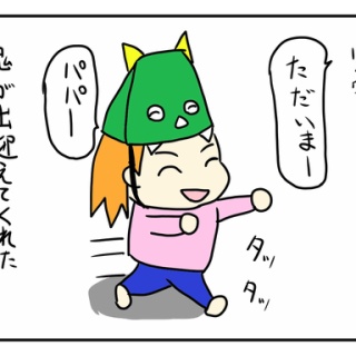 節分だったので保育園で鬼の帽子を作ったみたいです。気に入っていたようで、ごはんも帽子をかぶって食べていました。保育園に鬼が来て怖かったみたいで「うちにも鬼がくるかもしれないよ」とママが言ったら「ここはゆんちゃんの部屋、鬼の部屋じゃないよ」と鬼が来ないように否定していました。新聞紙を丸めてガムテープを巻いた特製の豆も作っていました。今年はこの豆で家族みんなで豆まきを行いました。