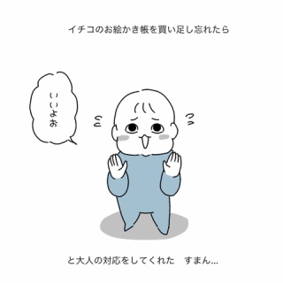 イチコはお絵描きが大好きです私がタブレットで描いているのを見ているからか、釣られているのもあると思うのですが…なのでお絵描き帳の消費がとても早く、買い足しても買い足しても間に合わない時がありますこの日は日用品や食品の買い出しで時間に追われ、うっかりイチコの大事なお絵描き帳を買い足し忘れるというミスをしてしまいましたしまったと思った頃には家目前、イチコに事情を話すと驚くほど素直に受け入れてくれ、「いいよぉ〜」と手を振り大人の対応いい子すぎてこちらが罪悪感はんぱないです…本当ごめんね…今度イチコがたっくさんお絵描きできるようにコピー用紙買うね!!昨日のイチコのお話はこちらから! にほんブログ村 にほんブログ村 にほんブログ村