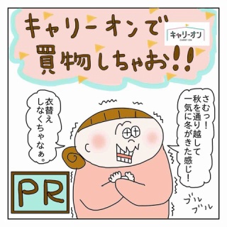 こんばんは⭐️今回はPR漫画だよ🐷👍✨キャリーオンさんで、今年もかわいい秋冬服をGETしたよ〜❣️すぐにサイズアウトしちゃう子供服だからこそ、お得にGETできると、すご〜く嬉しい🥳♪みんなもキャリーオンで買い物しちゃお❣️🌸Instagram限定割引クーポン🌸「instacarry2」で、全商品20%OFF!お買い物する時は、ぜひ使ってみてね🐷