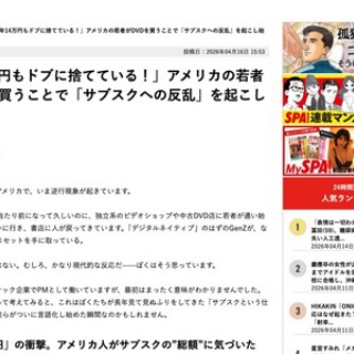 1 : https://nikkan-spa.jp/2155372 「サブスクの国」アメリカで、いま逆行現象が起きています。 フォーチュン誌が今年3月に報じた調査結果は、なかなかに衝撃的な数字でした。アメリカの消費者は平均して4.5本のサブスクに同時加入しており、年間で924ドル(約14万円)を支払っているというのです。 でも問題は、その多くを「ほとんど使っていない」という点です。同記事では、24歳の会社員ジェームズ・ダットンが自分のサブスク支出を見直したら、毎月120ドル(約1万8000円)が消えていたことに気づいたエピソードが紹介されています。「ほとんど開いてすらいないサービスに払っていた」と彼はYouTubeで告白しました。この動画が拡散し、同じ体験を持つ若者のコメントで溢れたというのです。 NetflixやSpotifyが当たり前になって久しいのに、独立系のビデオショップや中古DVD店に若者が通い始め、レコードを買いに行き、書店に人が戻ってきています。「デジタルネイティブ」のはずのGenZが、なぜかDVDのボックスセットを手に取っている。 略 ぼくたちがサブスクの何に疲れているかというと、単純に「高い」だけではないと思います。フォーチュンの記事で印象的だったのは、アトランタ近郊に住む38歳の医療ITワーカー、ルーディ・ロドリゲスさんの話でした。 彼はNetflixでドラマ「Seinfeld(日本でいう『古畑任三郎』のような、アメリカ人なら誰もが知る国民的コメディ)」を観るために加入していましたが、計算してみると年間300ドル近いNetflixの料金を払い続けるより、DVDのボックスセットを100ドルで買ったほうがずっと安い、という結論に至ったそうです。略 フィジカルメディアの復活は、数字にもはっきり出ています。全米レコード協会のデータによればビニールレコードの売上は2024年に14億ドルに達し、18年連続の成長です。販売枚数ではすでに数年前からCDを上回っています。書店大手バーンズ・アンド・ノーブルも、2025年に約60店舗を新規出店し、2026年もさらに約60店舗を開く計画。かつて「時代遅れ」と言われた老舗書店が、今や拡大路線に転じています。全文はソースで