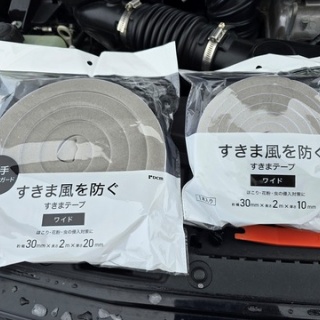 YouTubeでたまたま流れてきたプロボックスの燃費改善チューンを参考に4回目の共振対策です。エアインテークの入り口を狭くして空気の流速を早くする、毒キノコの逆の方法というかラムエアの様なチューニングですかね。冬になるとホームセンターに並ぶようになるすきまテープを使います。20㎜厚と10㎜厚を用意いずれも2~300円位でした。20㎜厚で足りる部分は20㎜厚のみで対応。足りない部分は10㎜厚を重ねて貼ります。入り口だけを塞ぐのではなく奥まで入れて、斜線部分を全て埋める様に施工します。すきまテープには両面テープが付いているので脱脂してから施工するといいですね。これでインテークパイプに対して直線的に空気が送られて流速も速くなり、振動の原因を減らすことが出来るかなと。すきまテープがもろみえだとかっこ悪いので黒テープを貼ります。さて、テスト走行です。速度は60~70キロ パワーメーターは20.25Kw位ハイブリットモニターのエンジン回転数は1746RPMまさにここが共振発生ポイントなんですが、共振的なものは何も感じませんでした。施工前は共振対策1~3でも取り切れなかった微振動があったのですが、それがなくなりましたね。心なしかアイドリングも静かになった気がしますが、この辺はプラシーボかもしれません。トルク感やレンスポンスの変化は解りません。スポーツモードにして峠や高速を飛ばすときは吸気不足を感じるかもしれませんが、北海道の冬では大量の吸気が必要になるほどエンジン回転数が上がる事はありませんので、とりあえず春までこれで様子を見ます。すきまテープは何年が経過するとポソポソの粉状になってちぎれる恐れがありますので定期的な確認が必要ですかね。とりあえず共振対策としては満足のいく結果となりました。でもすきまテープって関東以南でも売ってる?トラスコ中山(TRUSCO) すきまテープ グレー 厚み20mm×幅30mm×長さ4m ATT2030-4トラスコ中山(TRUSCO)
