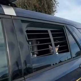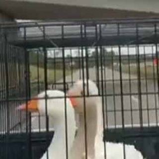 鳥(ガチョウ?)を乗せて ハイウェイを走る車。 あ、あぶない! 頭を下げろぉ~! 鳥さんたちはこんな感じ…