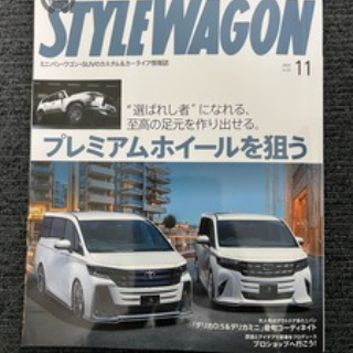 STYLE WAGON 11月号はプレミアムホイールについての特集が掲載されています。弊社からは王道メッシュと銘打たれたバィファルグランデ!40アルファードに21インチ装着です。全周ピアスボルトの存在感と相まってオーラが溢れるデザインのホイールです。