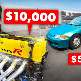 We Put a $10,000 Engine in our $500 Civic @Donut 500ドル(約8万円)のシビックに1万ドル(約150万円)のエンジンを乗せてみた動画。 今回改造されてしまうのはすでに1万ドルほどの費用を費やして改造されてしまったシビック。 しかし、それでもまだまだ遅く、満足のいく結果ではありません。 そんなわけで1万ドルのエンジンを乗せてみることにします。 乗せるエンジンはホンダのインテグラに積んであったK20Aエンジン。 まずはエンジンルームからエンジンを取り外し、スペースを確保。 次にK20Aエンジンを車体下から挿入し取り付け。 同時にラジエーターも設置し、車としての体裁を整えます。 改造が完了したらさっそくレースコースでその速度を見てみます。 以前よりも遅くなった理由はなんなんですかね。