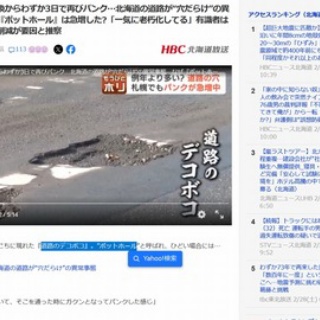 昨日(2/27)は先週金曜日に続き、娘の家(新居)に行きましたが... 札幌新道の雪もほぼ無くなり、アスファルト路面になっていました。 往復の時間は先週の2時間半→1時間20分になりましたが、非常に疲れました。 理由は札幌新道・アスファルト路面の「ポットホール」です。 車が道路の上を走ると、アスファルトが劣化し、ひび割れができる ↓ 雪解け水が入り込み、気温が下がり凍って体積が増えるとひび割れが拡大する ↓ これを繰り返すことで大きな穴:「ポットホール」になる 今年の2月は真冬にも関わらず、3月~4月並の暖かさの日が多かったため、この道路の穴ができる条件が揃ったそうです。 うっかりこの穴を通り過ぎると、通った時にガクンとなってパンクした感じになり、(タイヤの)横が裂けてしまうと修理が不可になり、交換が必要になるそうです。 交差点付近等、至る所ポットホールがあり、気を使いました...(-_-;)