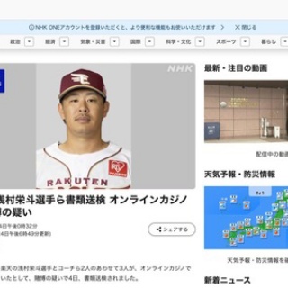 【野球】楽天 浅村栄斗選手らオンラインカジノ賭博で書類送検
