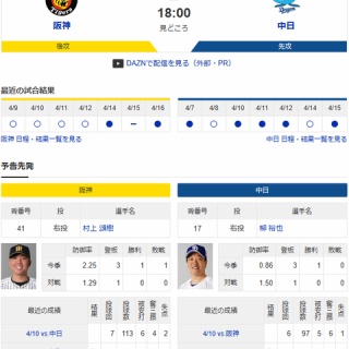 【ドラゴンズ実況】4/17 中日vs阪神(甲子園)18:00~先発:柳 【中継:NHKBS DAZN他】