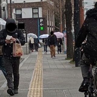 いや~、降られました。実際、天気予報が当たるとは、思ってなかったわ。雪、撮るの難しアルヨ。往きは、人身事故で車内缶詰めになり。帰りは、雪の吹き降りに遭い。一般的には「ついてない日だ!」てな受け止めになるのかもしれないけど。ホラ、へそ曲がりの私にとっては、ちょっと面白い。唯一、失敗したと思ったのは、ダウンコートにフードを付けてこなかった事。でも、道行く人も傘をさしていない印象。雪って、なぜかそう思わせる存在ですね。(傘ささなくても濡れない的な?濡れますけどね)実際、この雪はいったん雨になりました。しかし。明日の朝までには、当地、うっすら積もる予報が出ております。投票だって?平気。私には、グンマーで使っていた古いスノーシューズがあるのだ。負けねぇぜ‼click Please ↓
