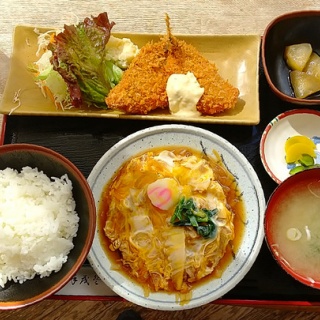 2025年10月2日昼 日替りランチ (アジフライと肉玉子とじ) 780円 @直美