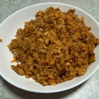 リュウジのキムチチャーハンこの前のチャーハンが美味しすぎてこちらも。https://youtu.be/GJSmXL9_oHY?si=UknL44A-4-mEqasZ材料(1人分)ご飯…200gキムチ…100g豚小間…70g卵…1個玉ねぎ…1/3個にんにくチューブ…目分量ゴマ油…大さじ1塩…適量こしょう…適量味の素…5振り黒こしょう…適量(思っている量の3倍の量がおすすめ)砂糖…小さじ1/2しょうゆ…小さじ1酒…小さじ1下準備玉ねぎ、豚小間、キムチをご飯粒サイズくらいまで細かく刻んでおく。手順①ゴマ油大さじ1を入れて強火にかける。②塩コショウした豚バラ70gを炒め、キムチ100gも汁ごと入れ炒める③溶き卵一個入れ間髪入れずご飯200g入れ混ぜ、玉葱1/3個、「味の素」5振り、思ってる三倍の胡椒、にんにくチューブ適量、砂糖小さじ1/2入れ炒め、醤油小さじ1、酒小さじ1入れ完成感想やっぱりうまい。このパラパラをIHの普通のフライパンで出来るのがやはり感動。ただ豚小間とキムチをみじん切りするのが結構時間かかるので次はそこまで細かくしないでやってみようかな、けどそれで美味しくなかったら、、と迷うところ。