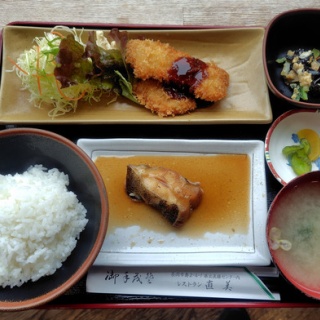 2025年12月25日昼 日替りランチ (カラスカレイの煮付けと一口カツ) 780円 @直美