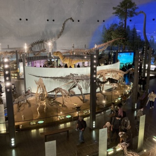 2021年12月4日(土)福井県立恐竜博物館(11:36~13:14)トリケラトプスの仲間とは思いますが、おそらく「ペンタケラトプス」でしょうか?小学生の頃は、恐竜といえば、ブロントサウルス、ティラノサウルス、ステゴサウルス、トリケラトプス、プテラノドンくらいの紹介だったと記憶しています。こちらは「ステゴサウルス」に近いですが、体の角からすると、「ケントロサウルス」と思われます。恐竜の種類は多いので見分けるのに大変です。展示は非常に見やすく工夫されているように感じました。来訪時には「海竜」の特別展が開催されていました。史上最大の魚竜類として「ショニサウルス・シカニエンシス」が展示されていました。福井県立恐竜博物館 その3 に続きます前の記事 福井県立恐竜博物館 その1