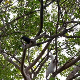 木に下にいる猫さんたち。 音のない音楽会♪ 猫さんたちの演奏はこんな感じ…