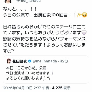 【朗報】花田藍衣さん、本日の公演で出演回数100回を達成!【AKB48めいめい】