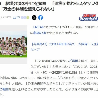 【闇深?】HKT48さん、「運営の不手際のため」劇場公演が5公演も中止になってしまう「運営に携わるスタッフ体制の変更」で「万全の体制を整えられない」