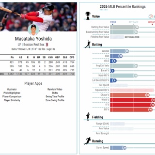 転載元: https://nova.5ch.io/test/read.cgi/livegalileo/1777169728/https://www.mlb.com/player/masataka-yoshida-807799 1: それでも動く名無し 2026/04/26(日) 11:15:28.84 ID:IHLij0pP0 過去3年1200打席も与えて全く結果が出せなかったのに 右投手の時は吉田を先発起用してくれたコーラが逝った 2: それでも動く名無し 2026/04/26(日) 11:16:19.45 ID:IHLij0pP0 吉田のfwar 2023 0.7 2024 0.9 2025 -0.1 2026 0.1 3: それでも動く名無し 2026/04/26(日) 11:16:23.69 ID:lUNOuiGa0 来年からセ・リーグDHですよ 7: それでも動く名無し 2026/04/26(日) 11:21:20.40 ID:IHLij0pP0 >>3 メジャーではガチで使い道がない選手やし来季の25億円捨てて漢気復帰あるかな