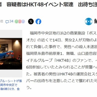 福岡2人刺傷 容疑者はHKT48イベント常連!出待ち注意で襲ったか!!!