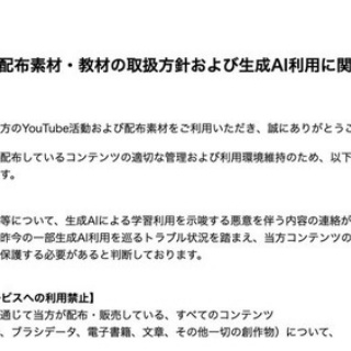 862. 名無しのリスナー かなり無茶じゃないか?【生成AI利用に関する声明】 悪意あるメッセージを受け、活動を守るため全ての配布素材・教材の「生成AI利用禁止」を明文化しました。 人間の方が私の教材を活用してくださることは、今後も変わらず大歓迎です。 詳細は添付の画像をご覧ください。 pic.twitter.com/hcHQiulUUc— ディープブリザード✨ (@mao_DBmiyuki) January 20, 2026 2026/01/23(金) 09:03:16.38 ID:XzKgezXj