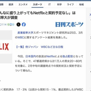【調査】WBC、「どんなに盛り上がってもNetflixと契約予定なし」は68%