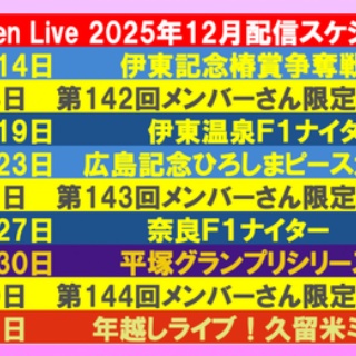 DMM競輪×Kobaken Live 12月配信予定表です ▼DMM競輪新規登録(こちらで登録していただくとそのまま私とリンクされます) ↓ https://x.gd/Kh5JA ▼「コバケンデスケイリンデス」の新規登録 ↓ https://form.dmm.com/keirin/kobaken_keirin2025_new すでに登録されていてあまり使っていない方は ▼既存会員 ↓ https://form.dmm.com/keirin/kobaken_keirin2025_already チャンネル登録・メンバー登録 サブチャンネル登録そしてDMM競輪加入 そしてAmeba🦠ブログもよろしく!