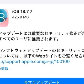 AppleがiPhoneやiPadなど向けiOS 18.7.7とiPadOS 18.7.7をリリース! Appleは24日(現地時間)、iPhoneおよびiPod touch向けプラットフォーム「iOS」とiPad向けプラットフォーム「iPadOS」において前バージョン「iOS 18」や「iPadOS 18」の最新版「iOS 18.7.7(22H333)」および「iPadOS 18.7.7(22H333)」を提供開始したとお知らせしています。 変更点はともに重要な脆弱性の修正が含まれているとされており、セキュリティーアップデートについてはCVEに登録されているKernel関連の「CVE-2026-28868」や「CVE-2026-28867」、「CVE-2026-20687」、ImageIO関連の「CVE-2025-64505」、WebKit関連の「CVE-2026-20665」や「CVE-2026-20643」、「CVE-2025-43376」、「CVE-2026-28871」、「CVE-2026-28861」、「CVE-2026-28859」などの25個の脆弱性が修正されているということです。 対象機種はiOS 18やiPadOS 18の対応機種となっており、すでにiPhoneについては最新のiOS 26に対応した製品についてはiOS 18.7.7へのソフトウェア更新を選べなくなっているため、iOS 26の対象機種ではないiPhone XSやiPhone XS Max、iPhone XR向けとなっているほか、iPadについてはiPadOS 26の対象外となるiPad(第7世代)のほか、iPadOS 26の対象機種のiPad(第8世代)以降やiPad mini(第5世代)以降、iPad Air(第3世代)以降、12.9インチiPad Pro(第3世代)以降、11インチiPad Pro(第1世代)以降となっています。 なお、すでに紹介しているように同社では合わせてiPhoneやiPadなど向けに最新の「iOS 26.4」および「iPadOS 26.4」を提供開始しているほか、パソコン「Mac」向け「macOS Tahoe 26.4」、スマートウォッチ「Apple Watch」向け「watchOS 26.4」、スマートテレビ「Apple TV」向け「tvOS 26.4」、スマートヘッドセット「Apple Vision」向け「visionOS 26.4」なども配信開始しています。